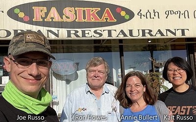 Ethiopian food is eaten with your fingers.) They were headed